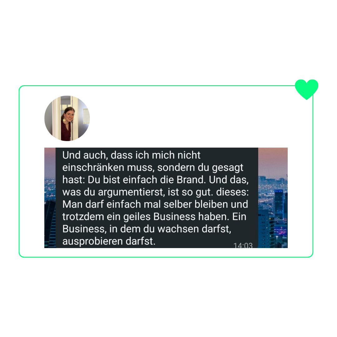 Der Gamechanger kam, als ich aufgehört habe, Business nach Fahrplan Anderer zu machen und angefangen habe, mein Business auf meiner DNA aufzubauen. Content und Produkte flossen einfach nur so aus mir heraus und das spiegelte sich auch in meinem Umsatz wider.