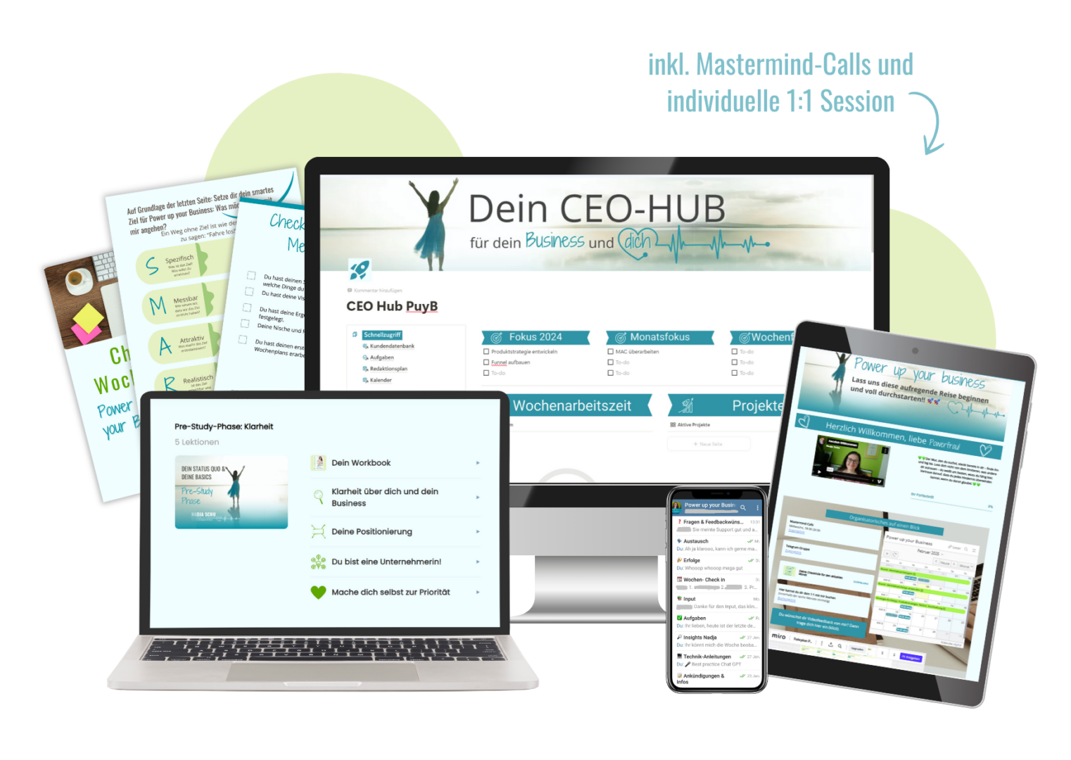Mit meinem Mentoring-Programm Power up your Business hast du nicht nur Zugang zu meinem Fachwissen und meiner persönlichen Unterstützung, sondern auch die Möglichkeit, dich mit Gleichgesinnten auszutauschen und voneinander zu lernen.